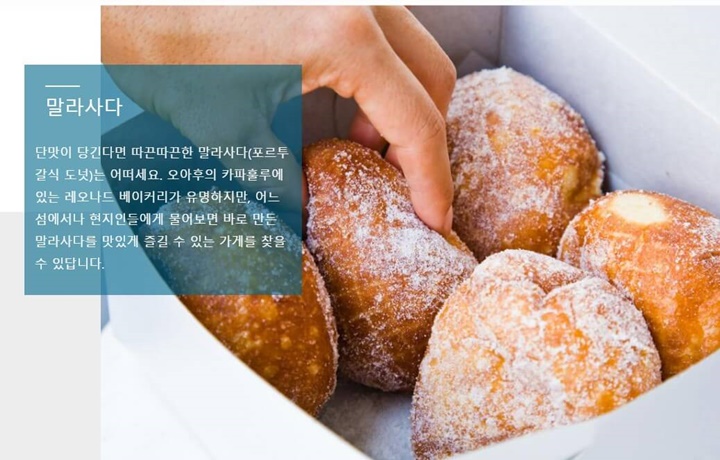 갓 튀겨 따끈할 때 즐기는 말라사다 도넛은 설탕과 시나몬 만으로도 충분하니 식사 중간 출출하다면 한두 개쯤은 가볍게 먹을 수 있으니 꼭 한번 즐겨보시길 바랍니다.